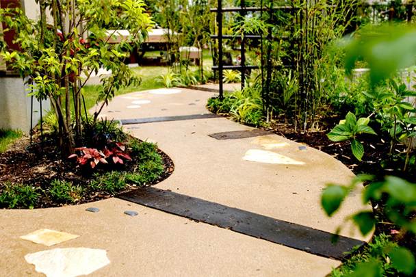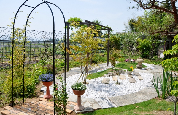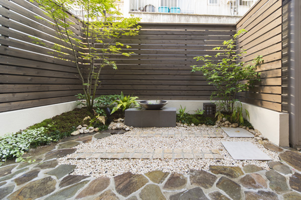 主張しすぎないお庭の素材は、小さな音さえも耳に響いてくる。