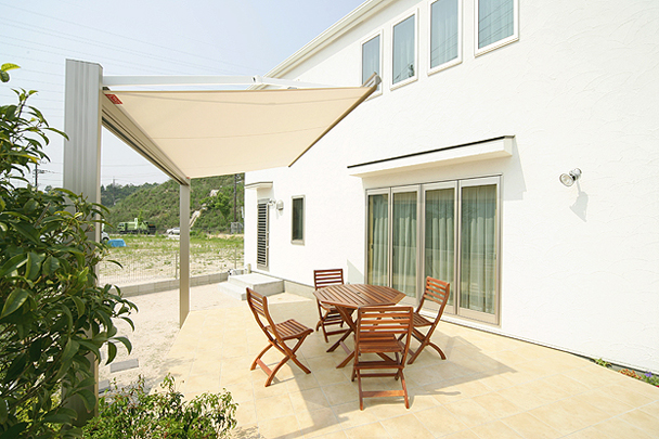 お天気の日には、お庭のテラスでカフェタイム。