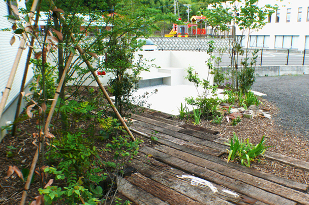 自然素材が囲まれたお庭。