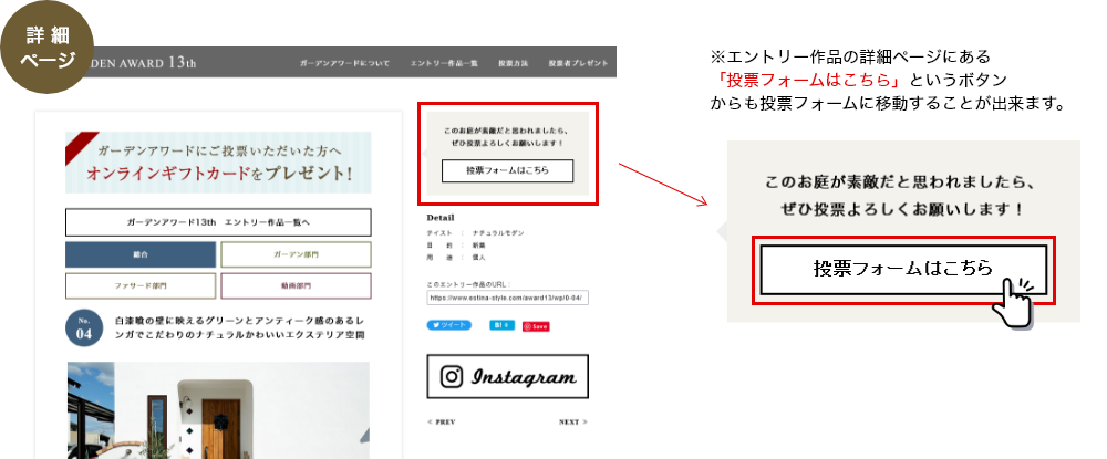 「投票フォーム」「Instagram #エスティナガーデンアワード15th」からご投票いただけます。